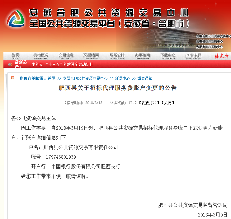 2、招標(biāo)代理服務(wù)費(fèi)賬號(hào)自2018年3月19日起已變更,請(qǐng)關(guān)注最新賬戶信息。