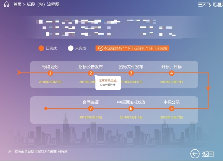 3、 招標(biāo)人查詢可選擇輸入賬號密碼(同申報系統(tǒng)的賬號密碼)或者插入CA鎖,招標(biāo)人查詢可查詢本單位招標(biāo)的詳細(xì)信息和當(dāng)前環(huán)節(jié),包括每個環(huán)節(jié)的時間節(jié)點,點擊每個節(jié)點的詳細(xì)信息可分別顯示標(biāo)段信息、招標(biāo)公告內(nèi)容、招標(biāo)文件信息、中標(biāo)公示內(nèi)容、中標(biāo)通知書信息和合同備案信息,還可導(dǎo)出項目明細(xì)列表。